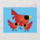 CARTE POSTALE OISEAUX CARDINAL ROUGE GRAPHIQUES DESSIN ANIMÉ CUT