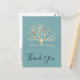 La carte postale Merci avec un arrière - plan vert muet superposé est un arbre jaune clair avec 2 silhouettes d'oiseau orange sur les branches.