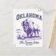 Célébrez l'héritage de l'Oklahoma avec cette illustration saisissante représentant un puissant bison debout sur la prairie. À côté reposent un calumet de paix et un bouclier, symboles de la culture amérindienne, avec des mesas lointaines et des plaines ouvertes capturant l'esprit de « l'État pionnier », établi en 1907.