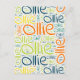 Ollie. Montrez et portez ce populaire beau prénom masculin conçu comme un nuage de mots coloré fait de lettrage à la main horizontale et verticale dans différentes tailles et des couleurs fraîches adorables. Portez votre nom américain positif ou montrez au monde que vous aimez ou adorez. Merch avec cette oeuvre d'art en texte souple est un grand cadeau personnel, pas seulement pour les occasions spéciales, ou cadeau d'anniversaire.