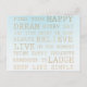 Aquarelle Ombrée Bleu Ciel et Or avec citations inspirantes en or: rêver, croire, vivre, penser à des pensées heureuses, rire, garder la vie simple