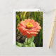 Cette jolie carte postale présente une photo détaillée d'une jolie fleur de Zinnia orange. La photographie a été prise en utilisant la macro photographie et montre la délicate beauté des pétales oranges et centre jaune de cette belle fleur.