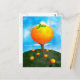 Illustration d'un concept écologique représentant un oranger qui pousse une orange géante avec de nombreuses petites oranges éparpillées autour sur le sol. L'image est disponible sur divers cadeaux et produits.
