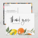 Envoyez vos remerciements en style avec cette carte postale de remerciement mariage personnalisable, avec un design d'aquarelle dynamique de citrons et d'oranges. Le parfait mélange de plaisir et de réflexion, cette carte postale vous permet d'express votre gratitude d'une manière joyeuse et tropicale. Personnalisez-le avec vos noms et un message spécial pour le rendre unique. Que vous remerciiez les invités pour leurs cadeaux, leur amour ou leur soutien, ce design frais et fruité est une façon ensoleillée de montrer votre appréciation, surtout pour les mariages d'été ou de jardin !