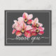 Carte Postale Orchidées roses et blanches Fond gris Merci