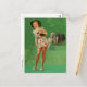 Funny PinUp card showing a beautiful Pin-up Girl Got picked by ostich by an, painted by Art Frahm (1907-1981)