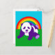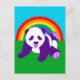 Un beau panda mauve se dresse joyeusement devant un adorable arc-en-ciel sur une pelouse verte sous un ciel bleu. Un timbre d'ours de panda fantaisiste et amusant pour un amoureux des animaux.