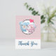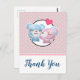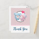 Carte de remerciement de fête avec une image de dessin animé mignonne d'un couple d'ours, l'ourse est rose pastel avec un petit nœud et elle embrasse la joue d'un ours bleu qui a l'air absolument ravi. Un petit cœur rose flotte au-dessus de leurs têtes. Très mignon et kawaii. Le motif de fond est d'une couleur rose atténuée avec des pois blancs. Message personnalisé au verso.