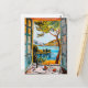Illustrated view from terrace window overlooking the Mediterranean Sea. Breakfast time