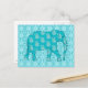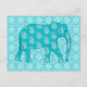 Graphique numérique multimédia mixte d'un éléphant contre un arrière - plan carrelé arabesque - bleu turquoise / paon avec un motif blanc, dentelle, cachemire et un arrière - plan turquoise et aqua