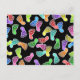 Illustration de nombreuses empreintes colorées avec des visages souriants joyeux qui se baladent contre un arrière - plan noir. Image disponible sur divers cadeaux et produits.