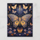 Carte Postale Papillon d'or bleu violet Art déco moderne