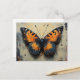 Art numérique d'un papillon noir et orange sur un mur bronzé en détresse.