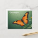 Un papillon orange et noir brillant sur un fond vert crée une belle carte de remerciement. Parfait pour tous ceux qui aiment la nature.