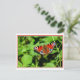 Cette carte postale présente la photo d'un beau papillon paon reposant sur le feuillage dans un jardin.