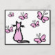 Un chat rose est captivé par le brouillard de papillons roses qui tourbillonnent. Joli joli.