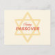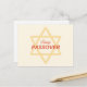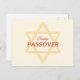 Cette carte postale présente une approche minimaliste et moderne des salutations Pâques. Dominant le design est une grande étoile dorée de David, ses lignes nettes et audacieuses, créant une interaction de symétrie géométrique et d'espace. Superposée sur l'étoile, la phrase "Happy PASSOVER" dans une police rouge et or contrastée, qui ajoute une touche de chaleur et de célébration à la carte. L'arrière - plan est une nuance crème subtile, assurant que l'étoile et le message festif sont les points focaux du design. Ce choix de couleur arrière - plan améliore les tons dorés de l'Etoile de David et donne à la carte un look doux et accueillant. La simplicité du design apporte une élégance contemporaine, ce qui le rend adapté à un large public qui souhaite envoyer ses souhaits de Pâque avec une touche de sophistication moderne.