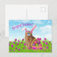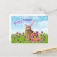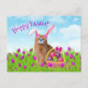 Texte modifiable, amusant thème de chat carte postale de Pâques de BigTexFunkadelic. Comprend un chat orange habillé en lapin de Pâques dans un champ de tulipes et un arrière - plan bleu ciel.