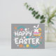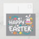 Carte Postale Pâques, Oeufs, Lapin & Fleurs Joyeux