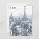 Cette carte postale de voyage, dessinée à la main, offre une vue sur l'horizon parisien aux côtés de la Tour Eiffel.