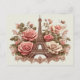 Un design romantique avec la Tour Eiffel ornée de motifs floraux complexes, de roses fleuris et de vignes luxuriantes, symbolisant la beauté et l'élégance des jardins parisiens.