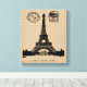 Carte postale Paris vintage avec la Tour Eiffel sur arrière - plan style burlap.