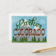 Parker Colorado néo vintage poster de voyage art mur en style rétro dessin animé. Il comprend des montagnes enneigées et la forêt en dessous avec un texte amusant et joyeux rétro.