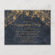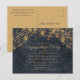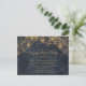 Moderne, élégant et chic bleu marine avec des lampes à cordes dorées scintillantes et une carte postale invitation à la fête de bokeh avec une belle police de script de calligraphie.