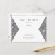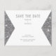 Image Parties scintillant en argent et style enveloppe blanche. "Save the date" pour mariage. Retour avec les noms de famille de la mariée et de la chambre ainsi que le Mariage de texte. Site Web. Classique.