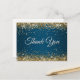 Carte Postale Parties scintillant d'or Faux Sparkly Ocean Blue M