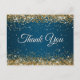 Créez votre propre anniversaire élégant grâce aux cartes postales. Faux parties scintillant dorée brillante avec étincelles contre un arrière - plan glamour océan turquoise dégradé bleu. Tous les effets brillants dorés brillants de la brillance dans ce design girly moderne sont créés avec des graphiques numériques. Un design créatif pour vos fêtes d'hiver, de vacances ou d'anniversaire de décembre.