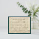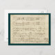 Partition manuscrite à l'encre noire sur un parchemin beige antique. Les notations musicales sont écrites sur le côté. A un look ancien.