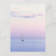 Des violets et des bleus pastel doux et rêvés composent cette image du paysage marin. Un voilier solo naviguant sur des eaux douces bleues. Un ciel rose brumeux avec quelques nuages doux au-dessus. Image calme et tranquille.