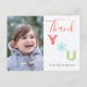 Merci à votre famille et à vos amis cette saison des Fêtes avec l'une de nos cartes postales photo personnalisées. Ce design moderne présente votre propre photo sur la gauche et sur la droite les mots "Merci" épelés dans les polices modernes de typographie rouge et verte avec un flocon de neige bleu aqua pour la lettre "O" avec votre nom de famille ci-dessous. Le dos de la carte postale a le mot Merci" en rouge. Ci-dessous, votre message de remerciement et signature pour vous de personnaliser. Changez la photo avec votre propre pour une de cartes de remerciements que votre famille et vos amis adoreront ! Conçu par des artistes © Tim Coffey et Susan Coffey. Photographie © Storytree Studios,