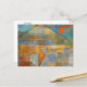 Une carte postale d'art avec le tableau de Paul Klee (1879-1940) intitulé Ad Parnassum (1932). Klee est un artiste allemand né en Suisse. Un tableau pointilliste d'une maison multicolore et d'un soleil orange.