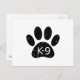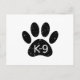 Un mignon empreinte de patte de chien de style dessin animé et texte avec l'effet grunge et angoissé appliqué à l'image. Carte postale personnalisée avec thème K9. Idée cadeau.