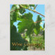 Vigne de raisin - gros plan de feuilles verts au soleil applaudi. Colline Brown et rangées de vignes dans l'arrière-plan. "Pays du vin !" en lettres d'or avec ombre portée.