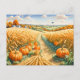 Carte Postale Paysage de Hilly avec champ de blé et Citrouilles