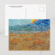 Une carte postale d'art avec la peinture post-impressionniste de l'artiste néerlandais Vincent Van Gogh (1853-1890), Paysage du soir avec lune montante (1889). Une scène nocturne des champs de blé avec une lune orange brillant se levant au-dessus des collines.