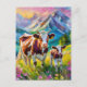 Une peinture impressionniste moderne et chaleureuse d'une vache-mère et de son veau dans un paisible pâturage rural de montagne, a donné vie avec des couleurs vives et vives et d'épais coups de pinceau abstraits. Les traits dynamiques capturent le lien paisible entre les animaux, tandis que les riches teintes de vert, de bleu et de terre créent une scène pastorale animée. Cette oeuvre d'art expressive allie à merveille nature et tendresse, parfaite pour ajouter chaleur et caractère à tout espace.