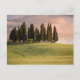 Image d'un paysage toscan de cyprès au coucher du soleil avec le ciel qui devient rose