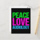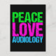 Peace Love Audiology écrit en vert néon, rose et bleu cool pour un regard grunge. Un cadeau mignon pour votre audiologiste préféré qui étudie la perte auditive.