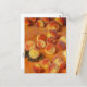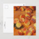 Carte postale d'art avec la peinture impressionniste Peaches (1883) de Claude Monet (1840-1926). Une représentation de la vie morte de pêches fraîches et mûres dressées contre un arrière - plan orange.