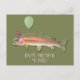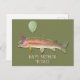 Belle truite arc-en-ciel avec casquette d'anniversaire et ballon. Personnaliser texte avec le nom de la personne d'anniversaire!
