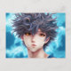 Ce graphique numérique est une peinture à l'huile d'un garçon animé aux cheveux bouclés irisés. Son visage est encadré par sa coiffure, et ses cils sont azurés. ...