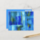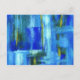 Carte Postale Peinture d'art Abstrait Bleu Vert Or Brosses