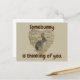 Cette photo de la nature capture un adorable lapin sauvage du désert assis à l'intérieur d'un grand cœur sur cette carte postale "à mes pensées". Le lapin brun avec ses longues oreilles se repose sur un chemin de terre. La grande forme de cœur entoure l'animal sauvage, créant une image mignonne pour accompagner le jeu de mots "Somebunny pense à toi". Le dos de cette carte postale est vierge pour permettre suffisamment d'espace pour que vous puissiez la personnaliser avec du texte ou des photos.