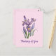 Carte Postale Penser à vous aquarelle violet Iris Botanique
