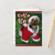 Ho-Ho-Ho ! Notre Père Noël Yorkie a l'air adorable dans sa tenue de Père Noël rouge sur un arrière - plan vert avec des empreintes de pattes et des flocons de neige. Père Noël Paws (alias Theodore) vous souhaite un très joyeux Noël et une bonne année. Idéal pour tous les amateurs de chiens et de yorkies.