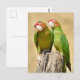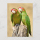 Deux Perruches Mitred, Psittacara mitratus ou Aratinga mitrata, sur poteau en bois regardant la photo